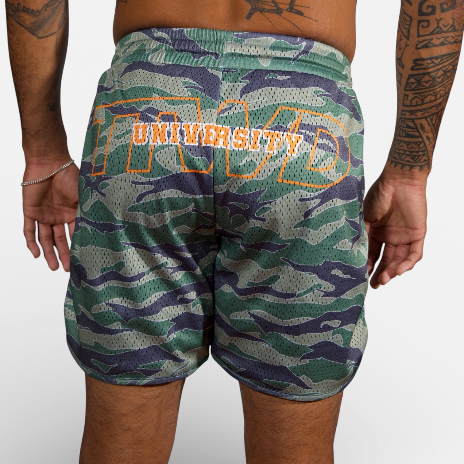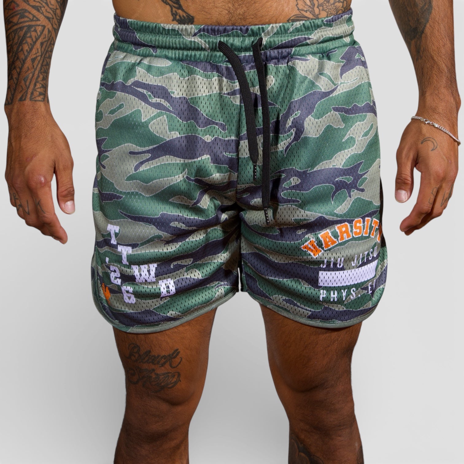 These 4-way-stretch super-soft mesh shorts are completely sublimated and were crafted with side pockets and adjustable drawstrings. Train in 'em or just lay on the couch in 'em.