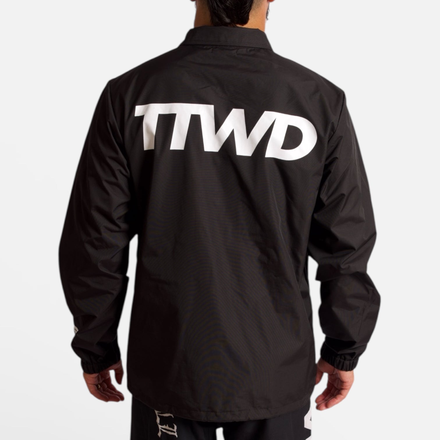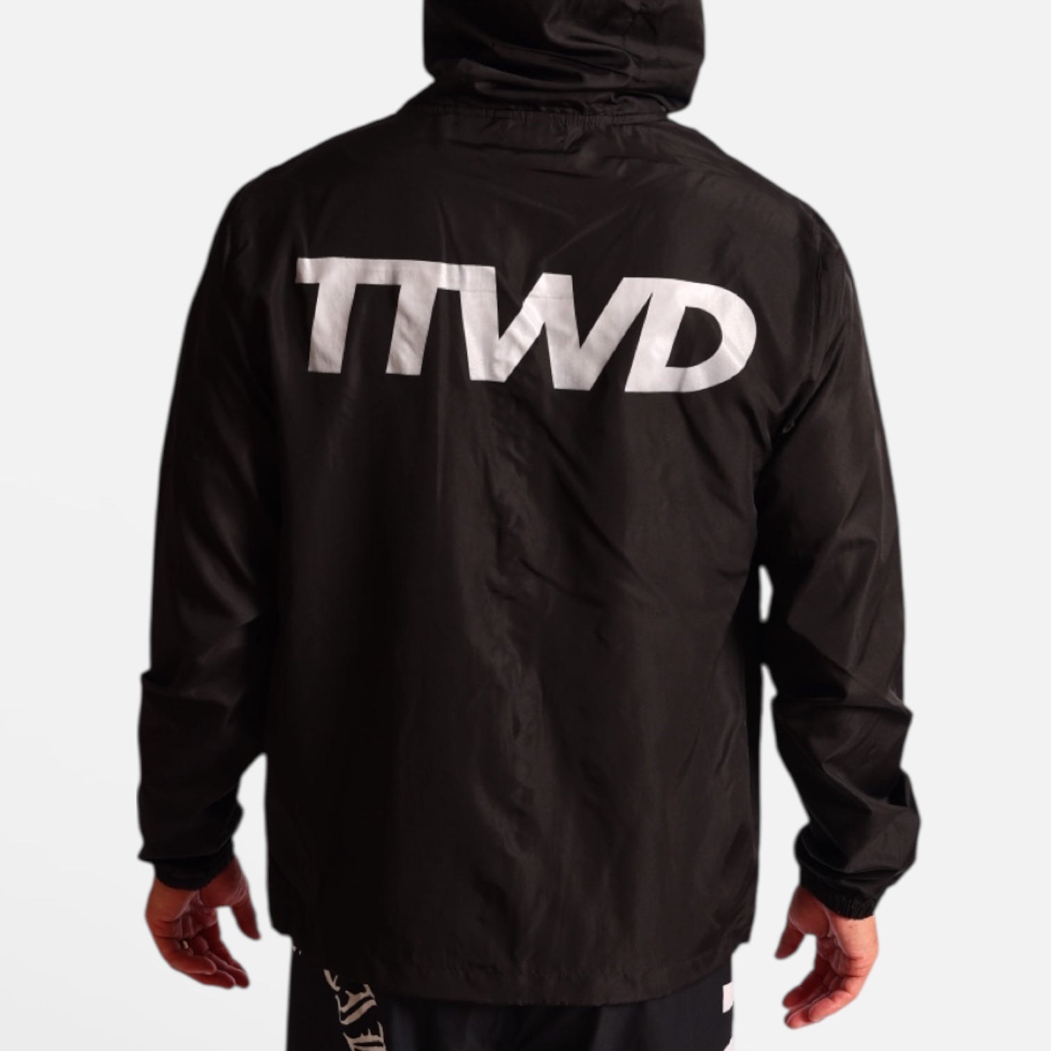 Each jacket is made from a Heavyweight 100% waterproof nylon. Our official TTWD logos are screen printed on the front and back. The Nylon exterior fabric is coated with a 100% water proof coating. Printed in Los Angeles, California. True to size. Regular fit.