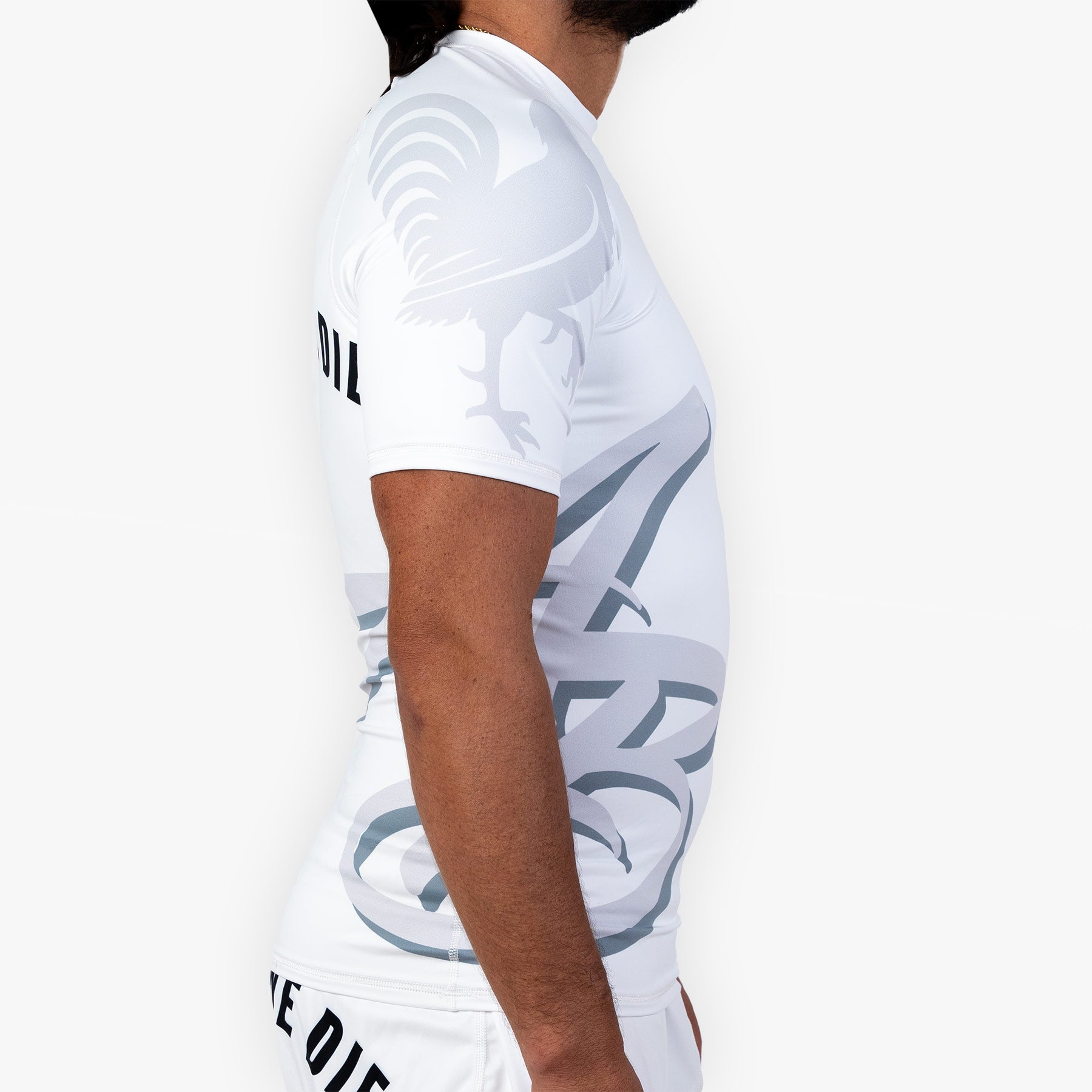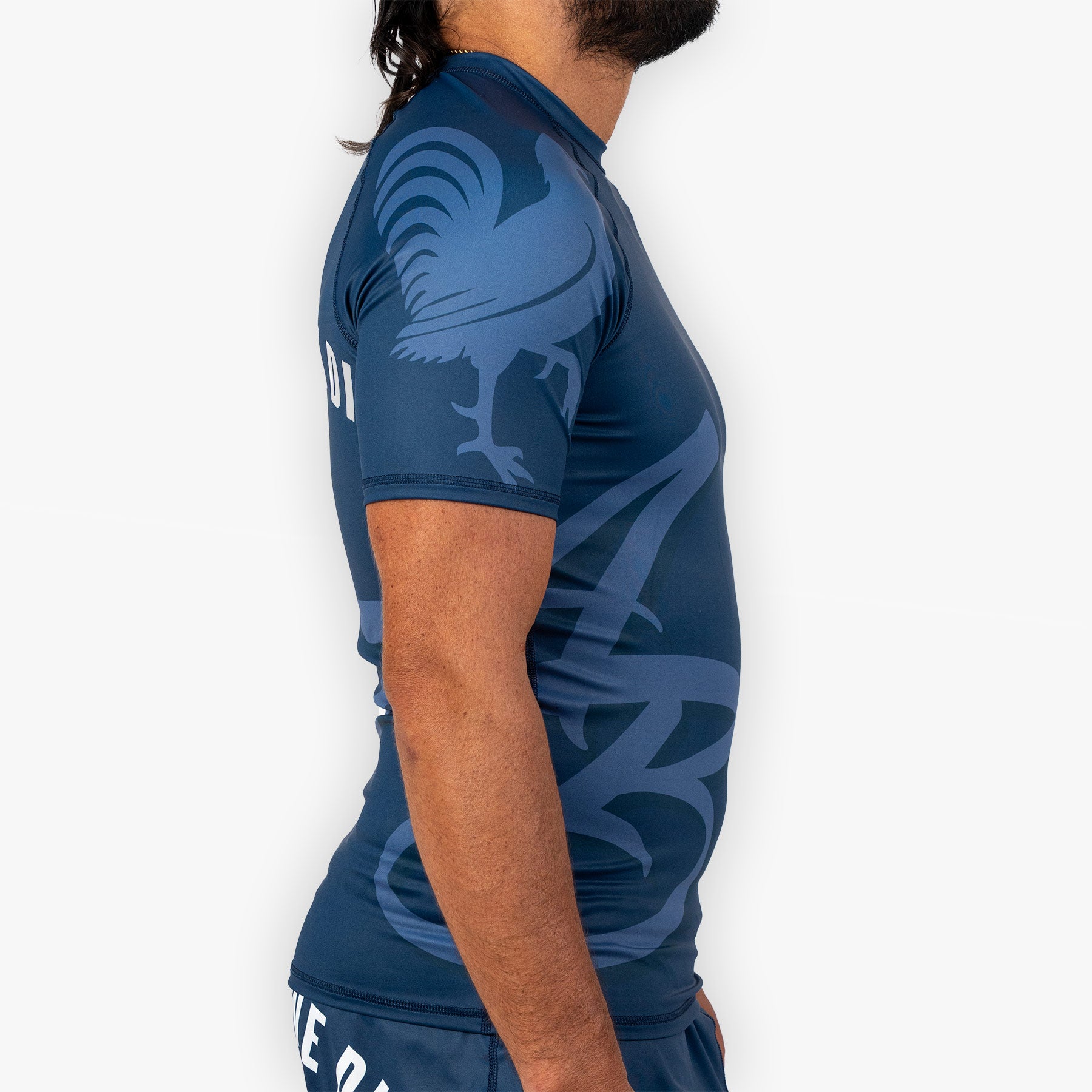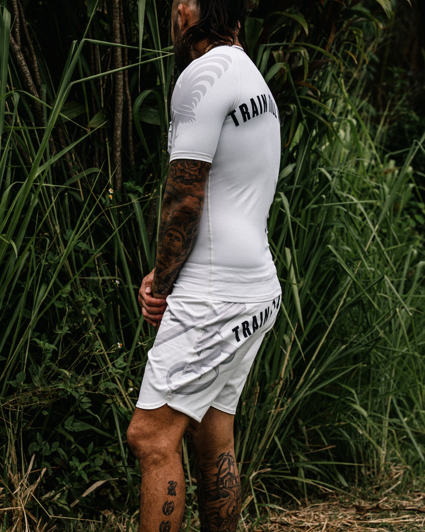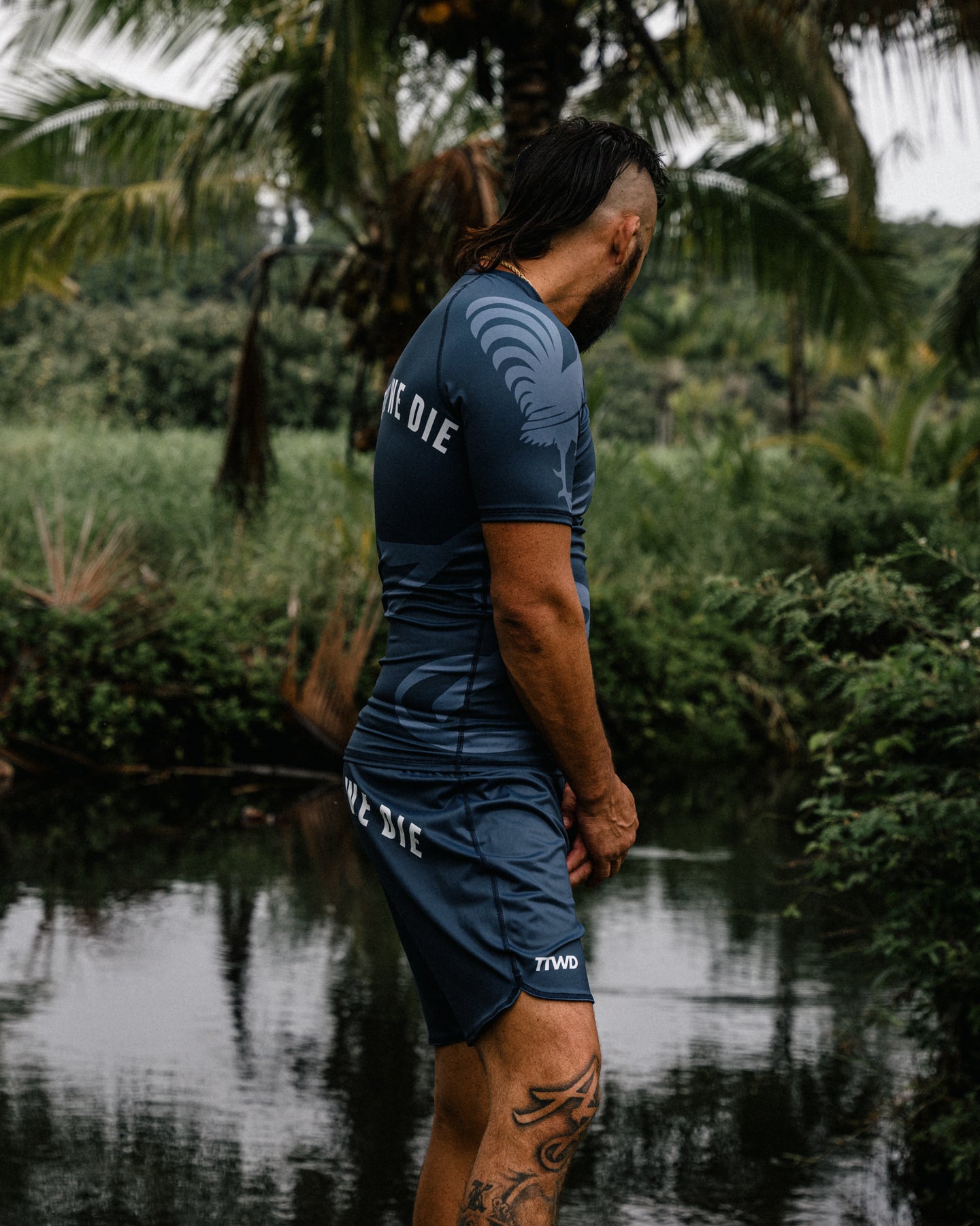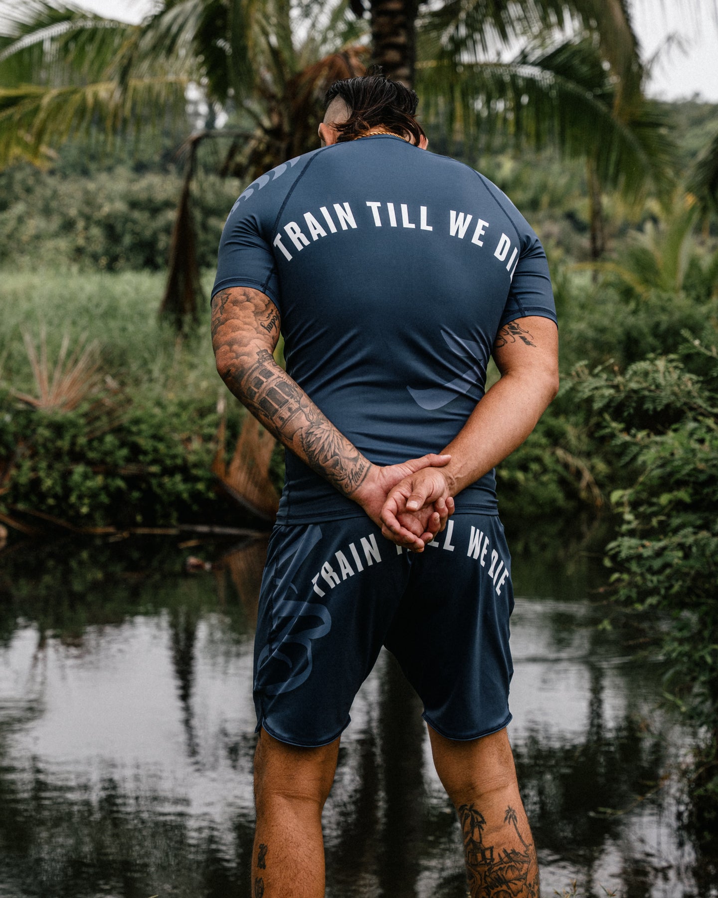 Each rash guard was entirely made in Los Angeles, California. This high-grade, fully sublimated rashguard is made from a durable, moisture-wicking, 4-Way-stretch material. (84% Polyester / 16% Spandex).