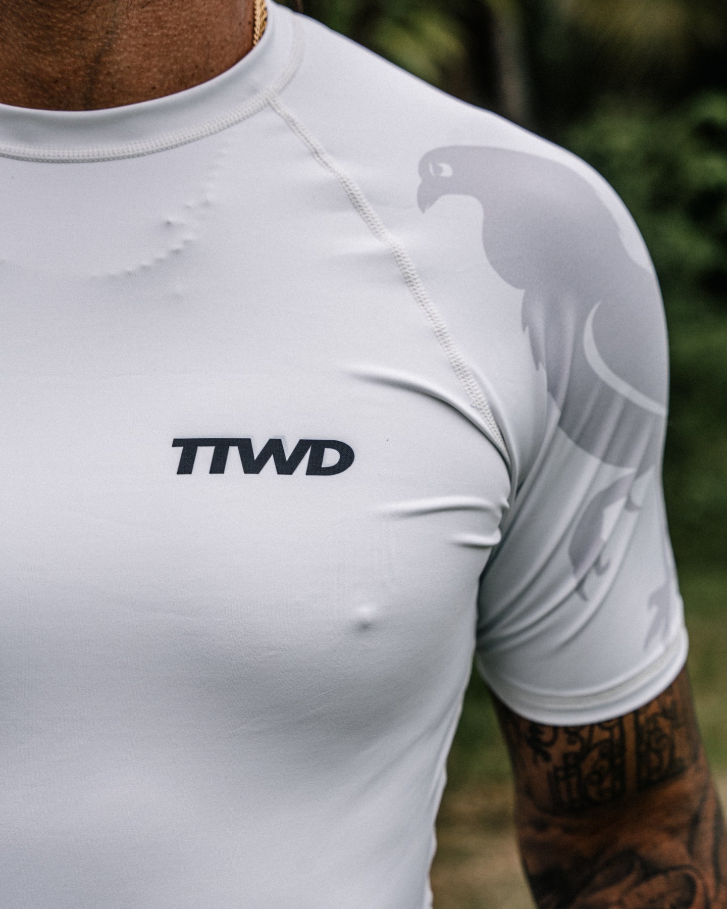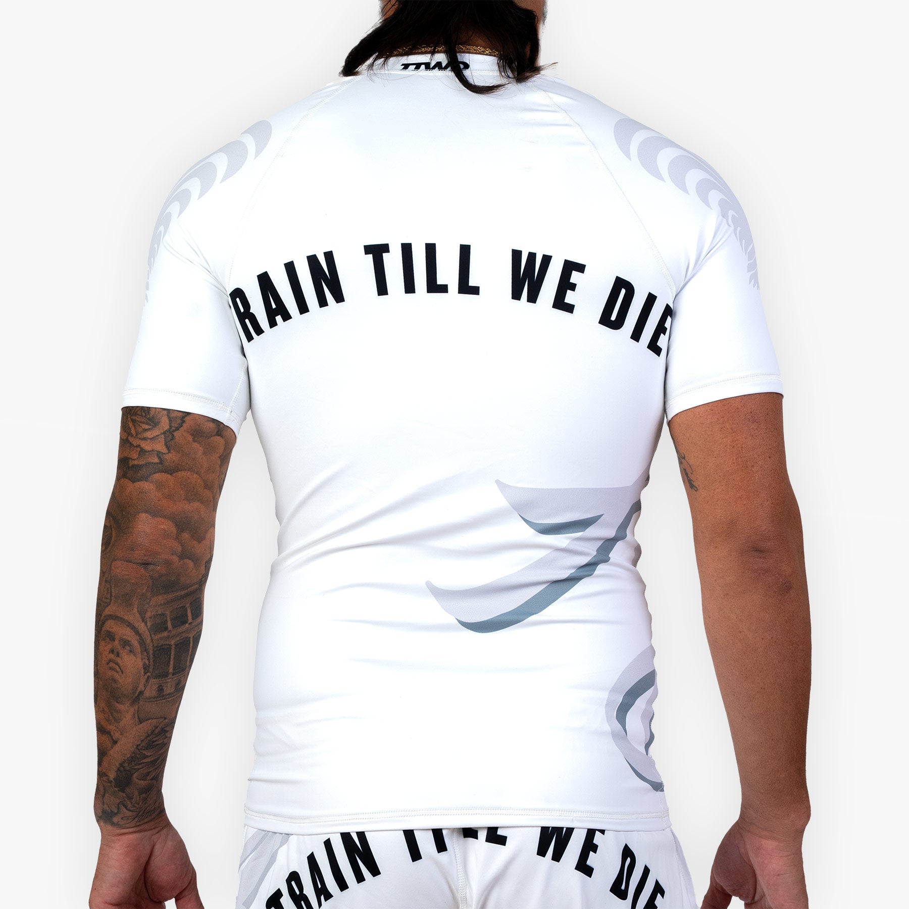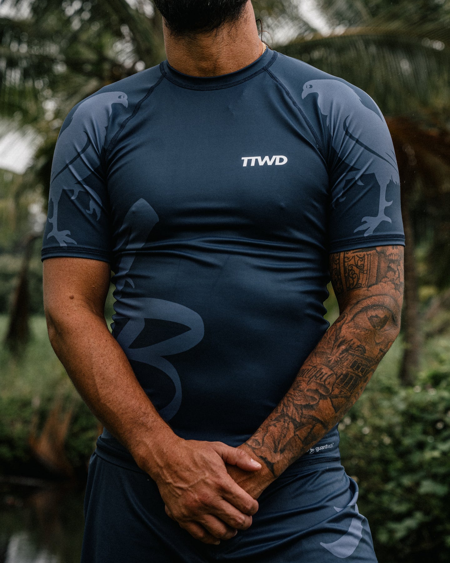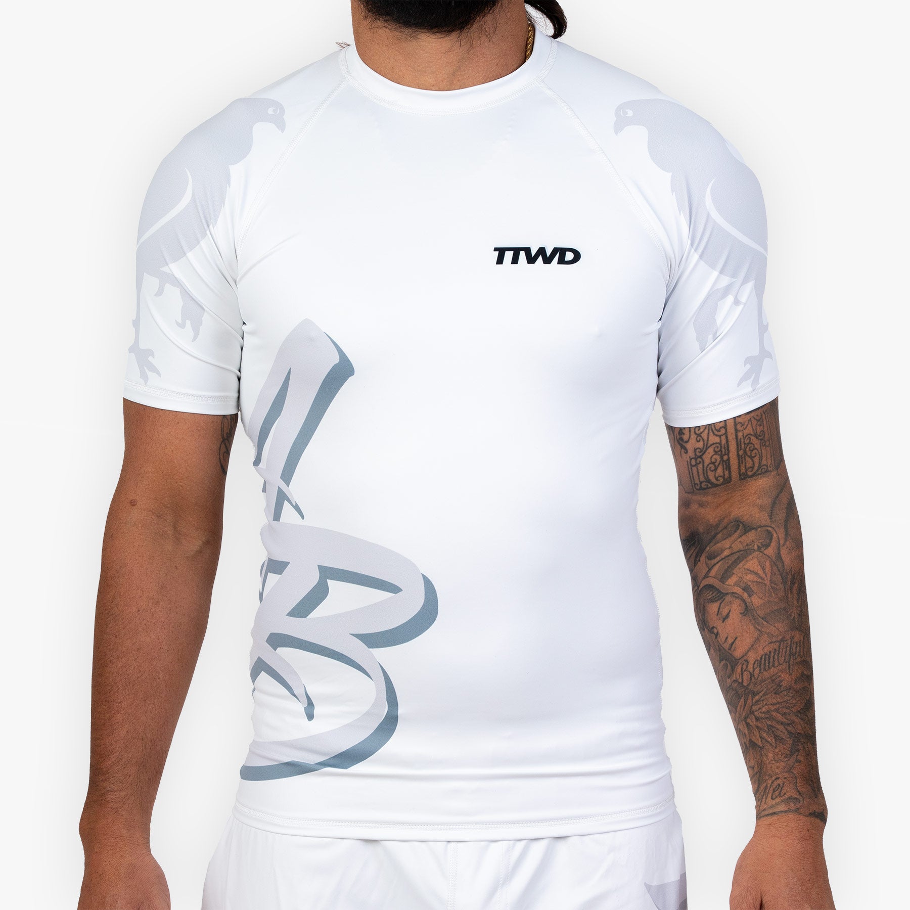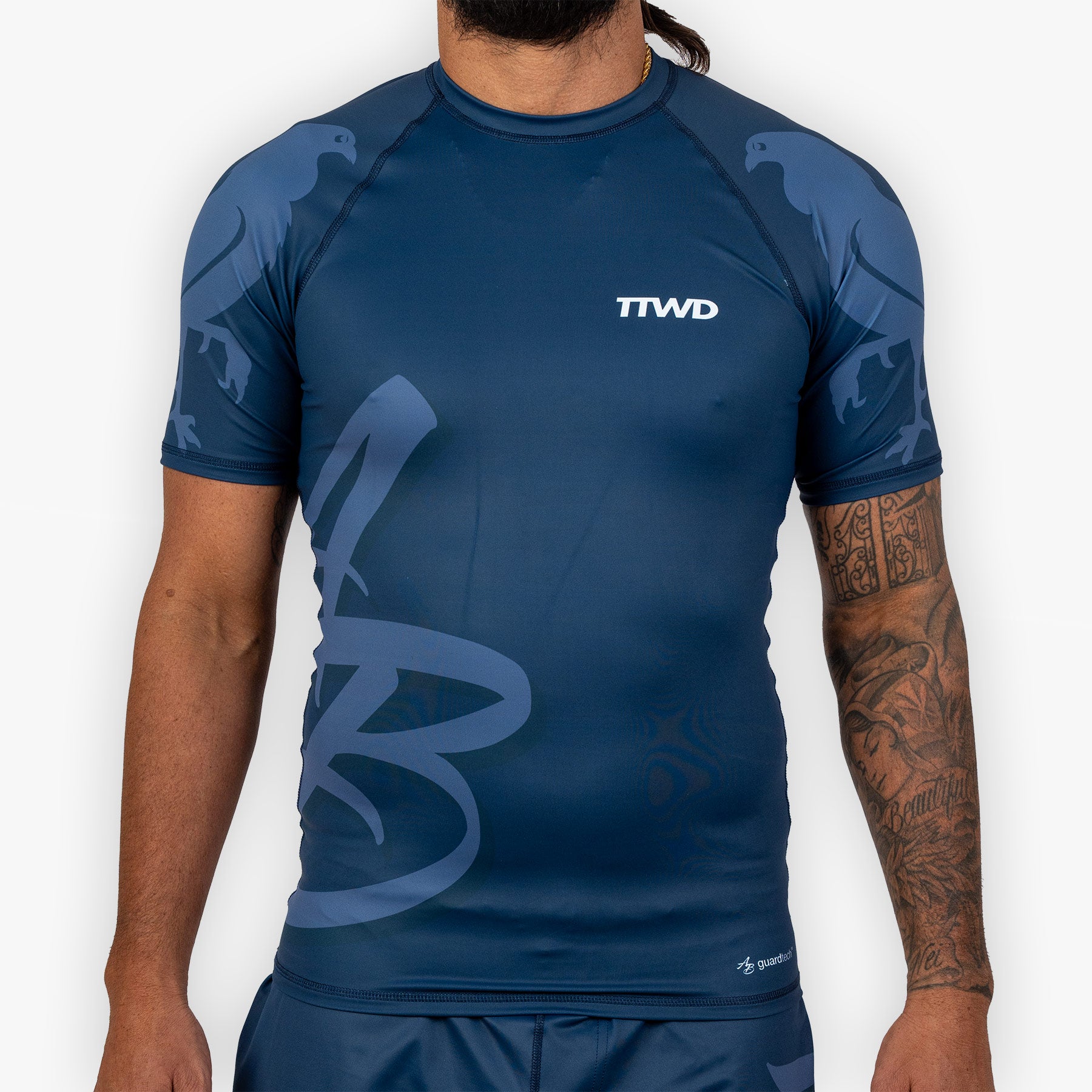 Each rash guard was entirely made in Los Angeles, California. This high-grade, fully sublimated rashguard is made from a durable, moisture-wicking, 4-Way-stretch material. (84% Polyester / 16% Spandex).