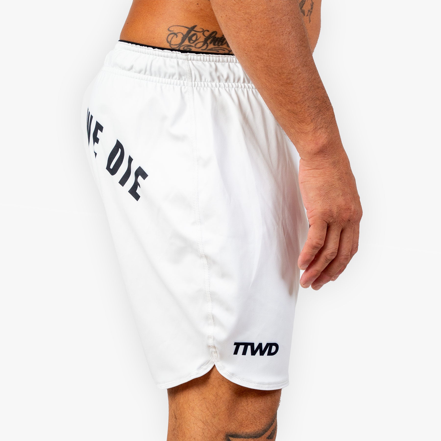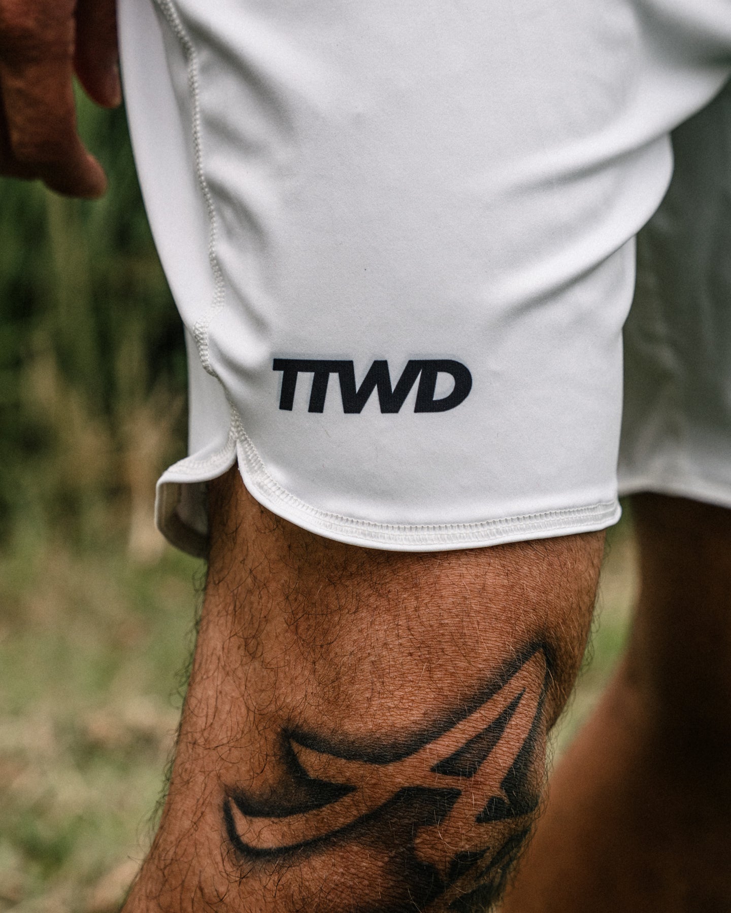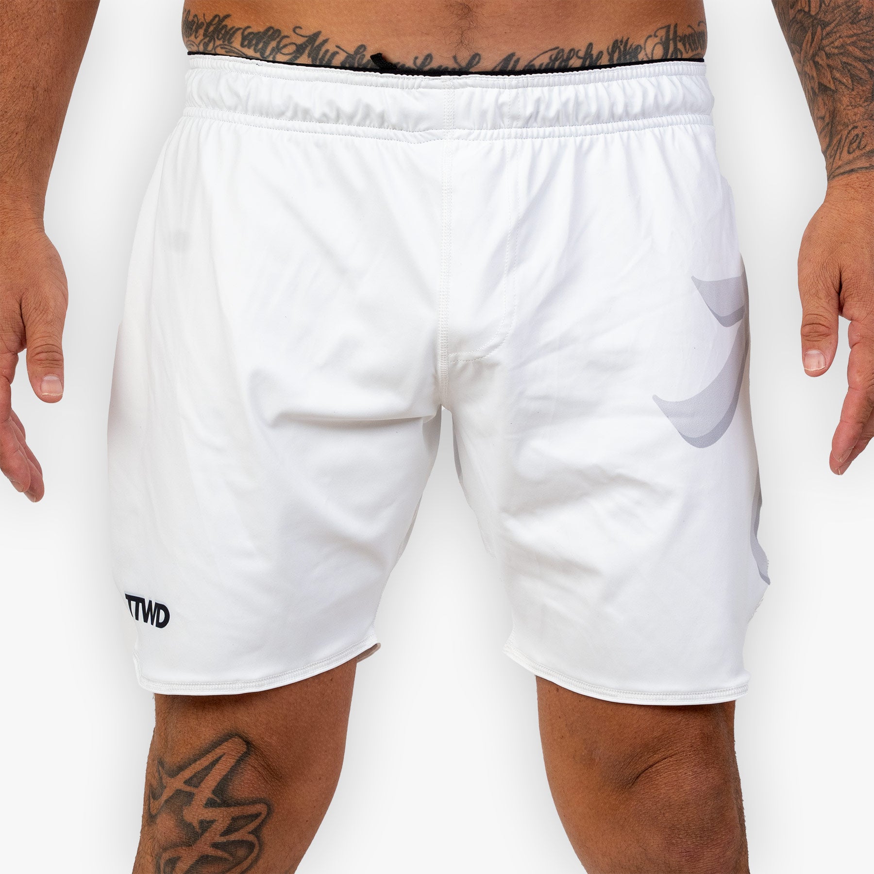 Each premium pair was designed in Hawai'i and made entirely in Los Angeles, California. With an outseam of 18", they sit just above the knee and feature a scalloped Dolphin Hem for ultimate maneuverability. This specific cut was developed to feature a slightly tapered fit and includes flat lock stitching around all edges so there is no movement restriction.