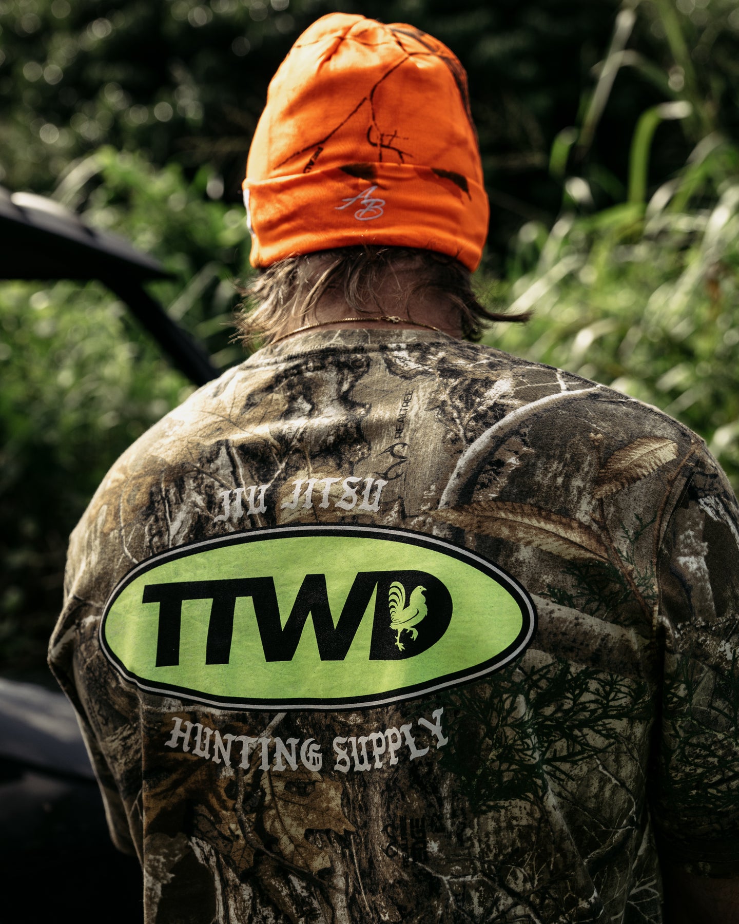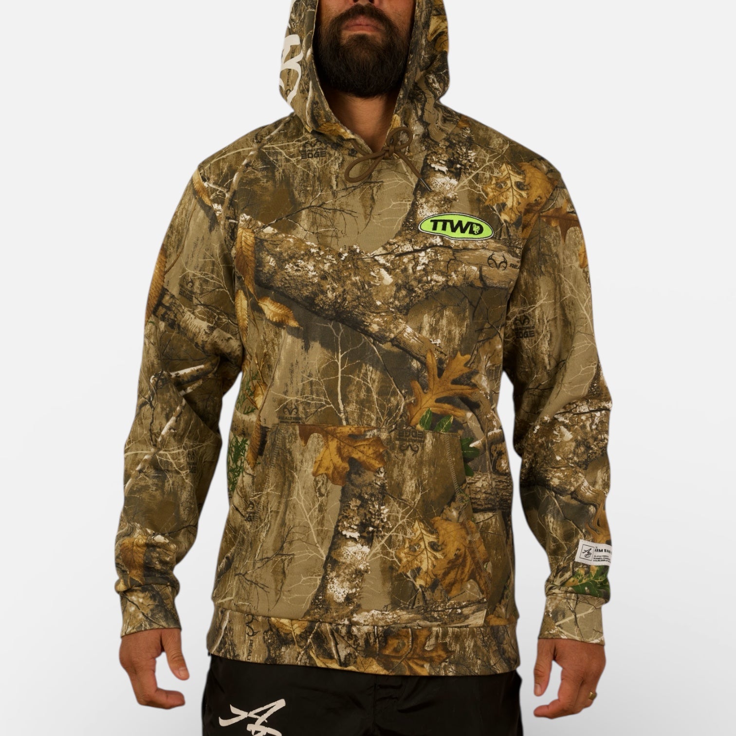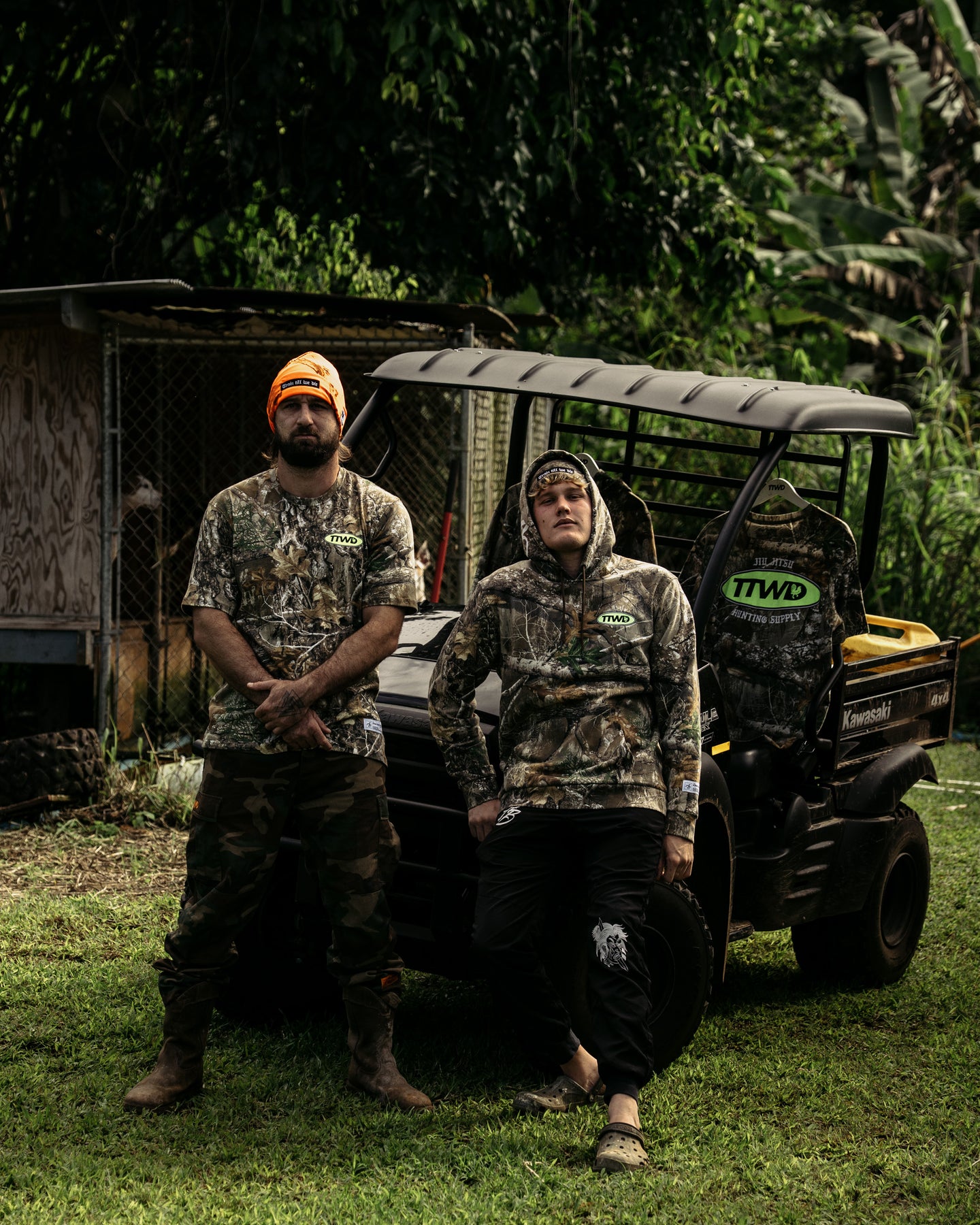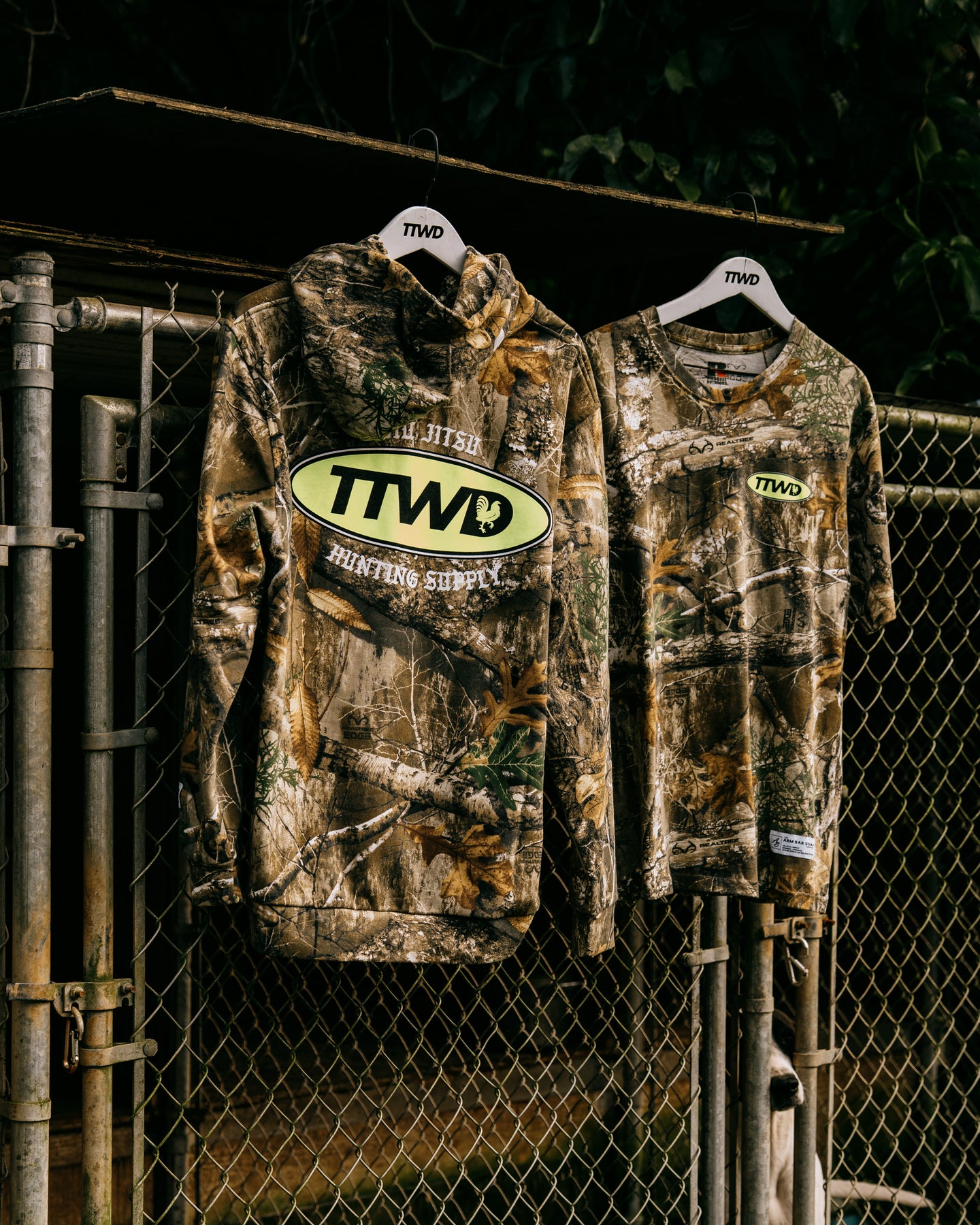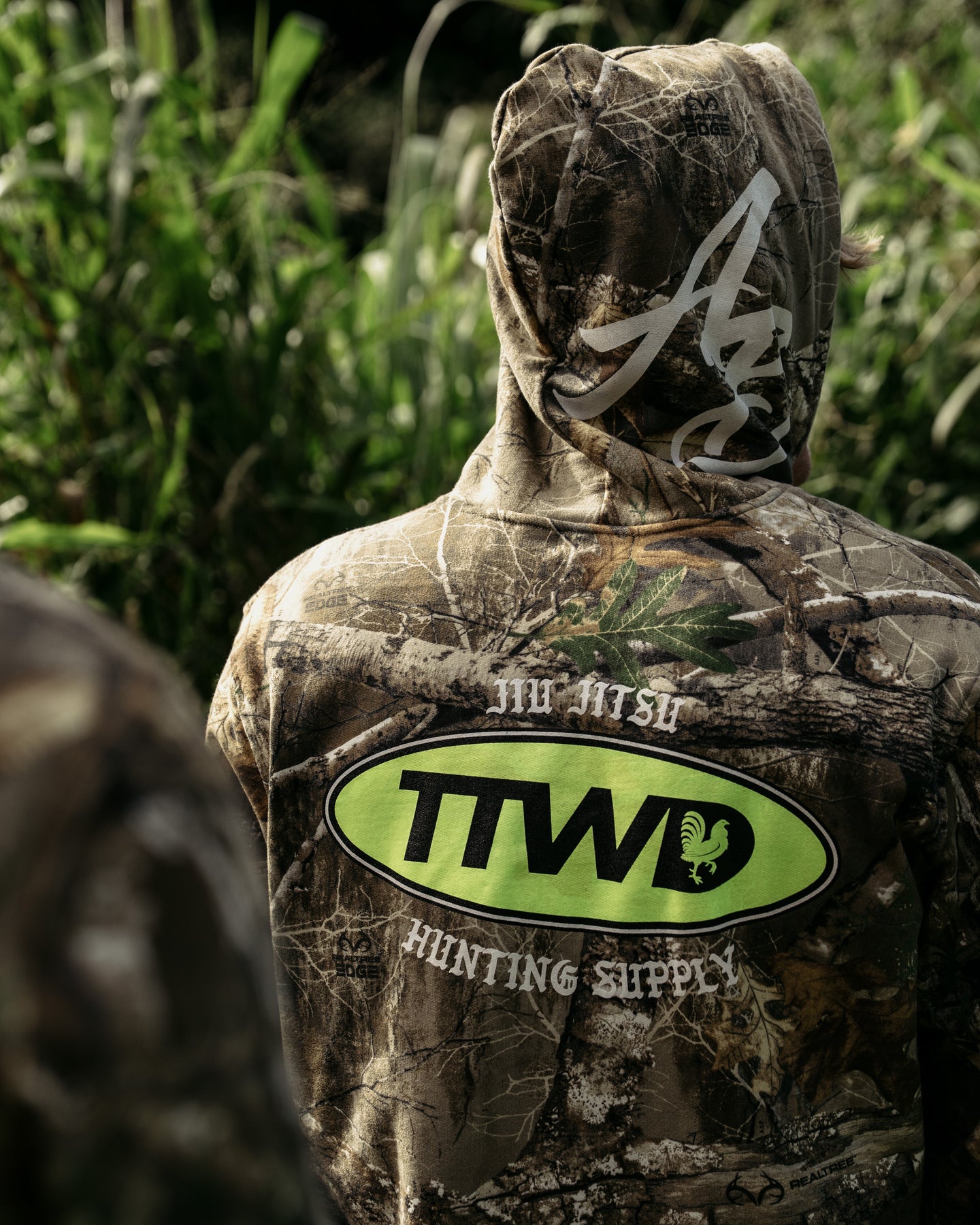 Our latest camouflage hoodie was made using officially licensed 100% cotton Real Tree Edge™ garments. The TTWD Hunting Supply Hoodie is made from a very soft mid-weight poly-cotton and features adjustable metal grommets and tipped round cords. Each hoodie features a regular fit and was screen printed and hand-embroidered by hand in Los Angeles on Official Real Tree EDGE™ merchandise.