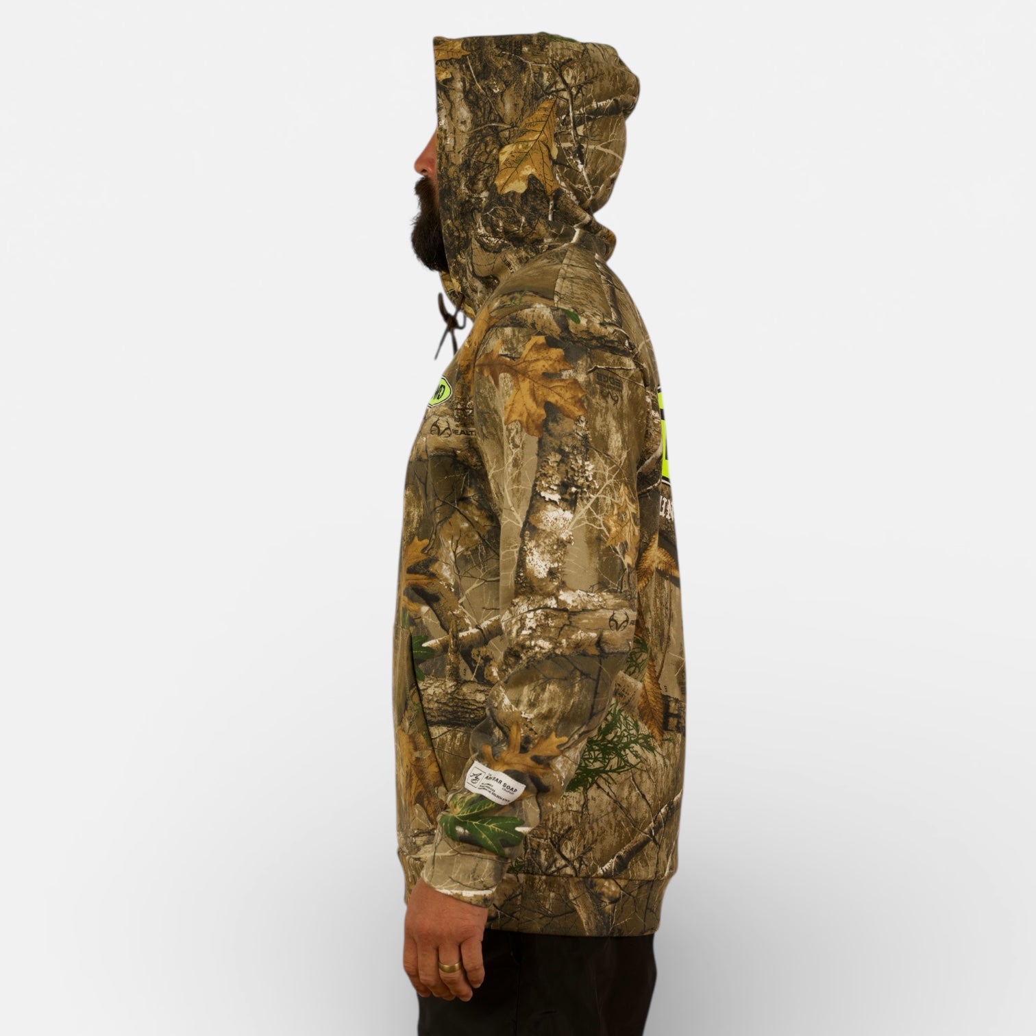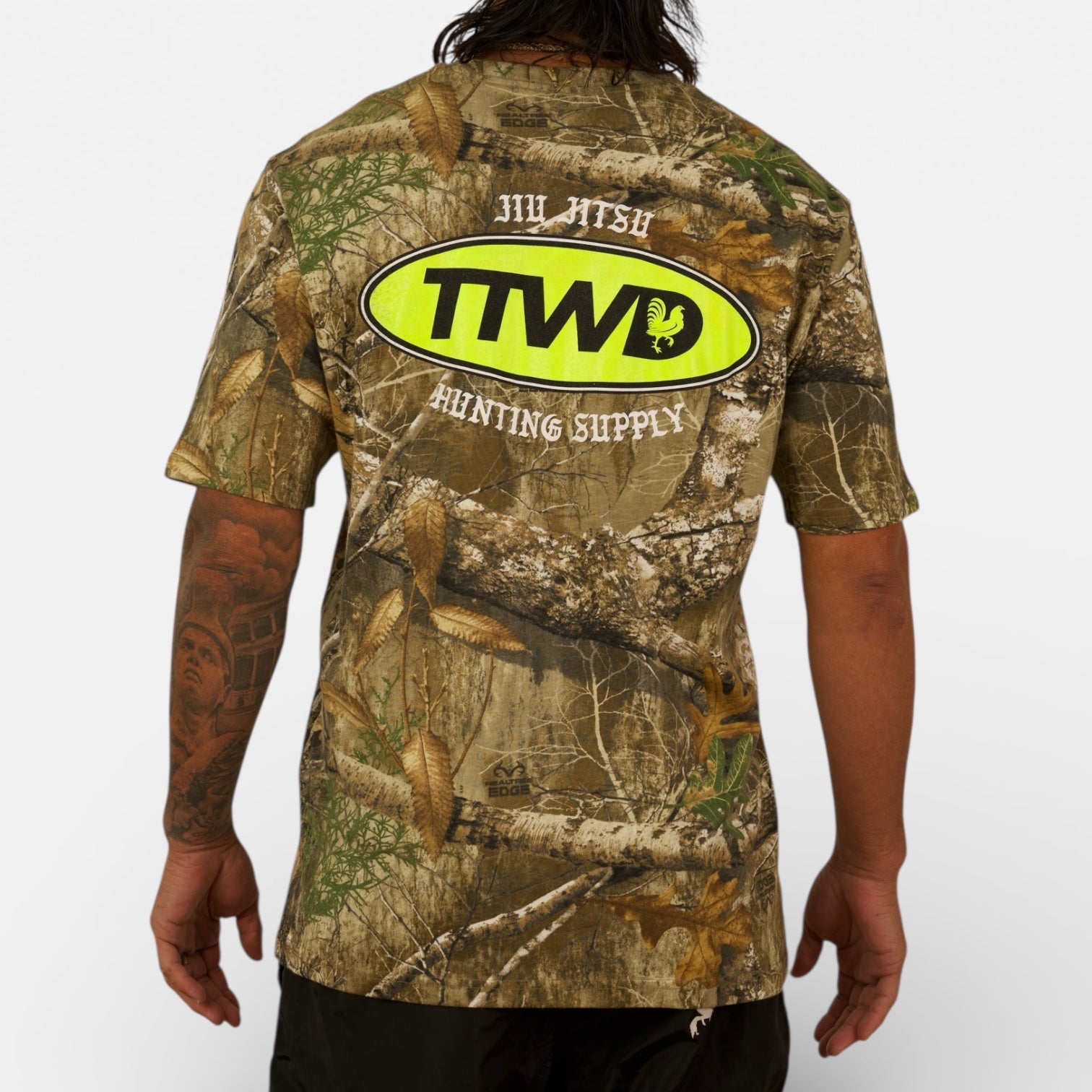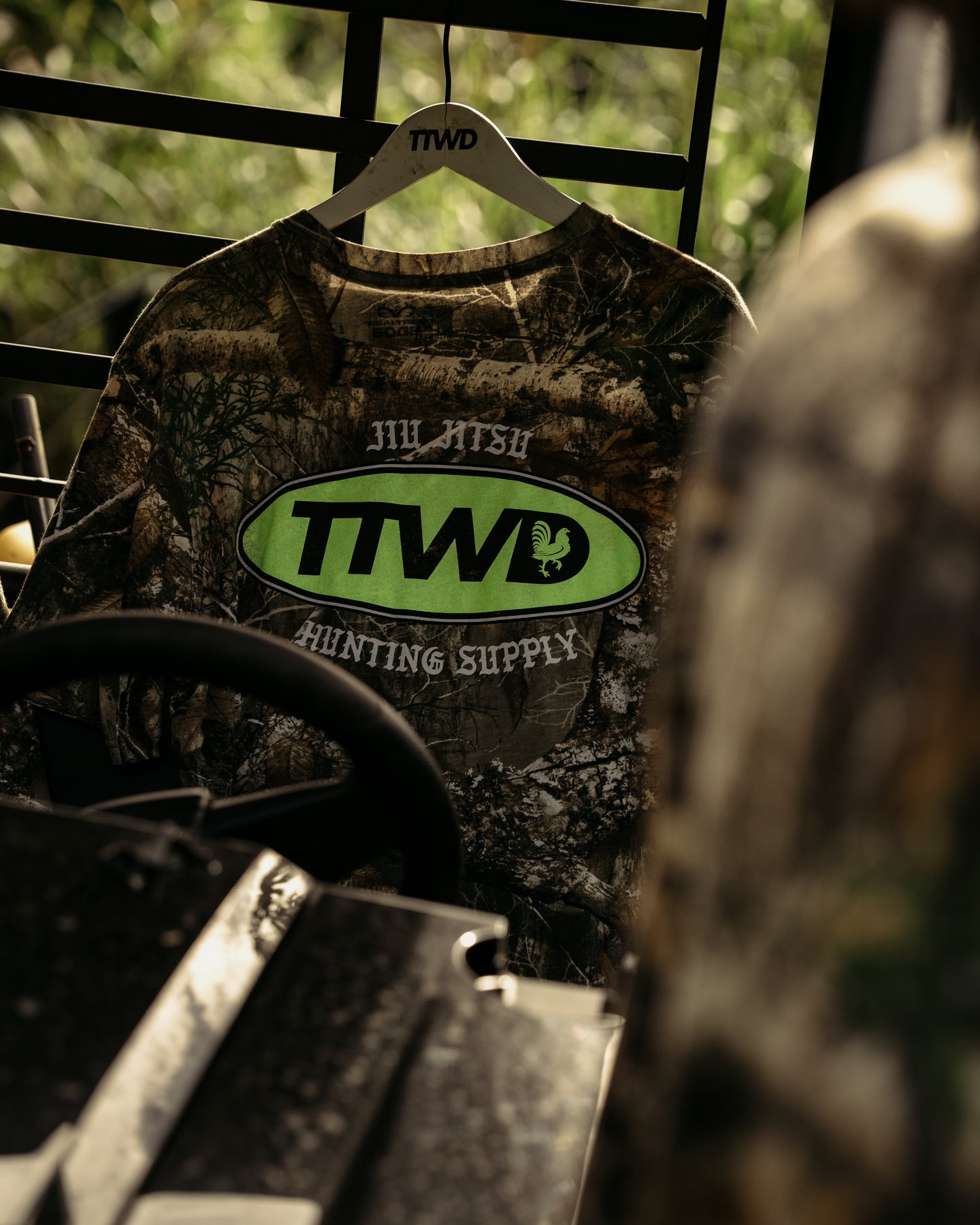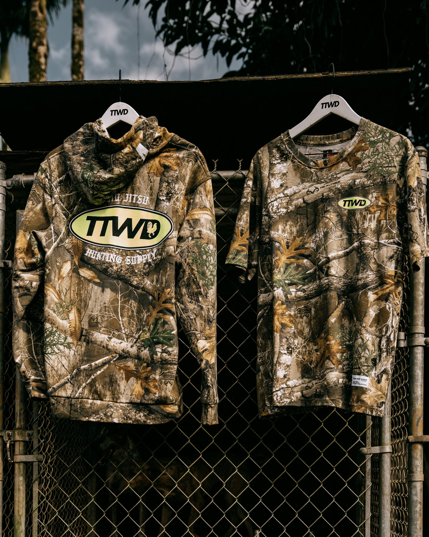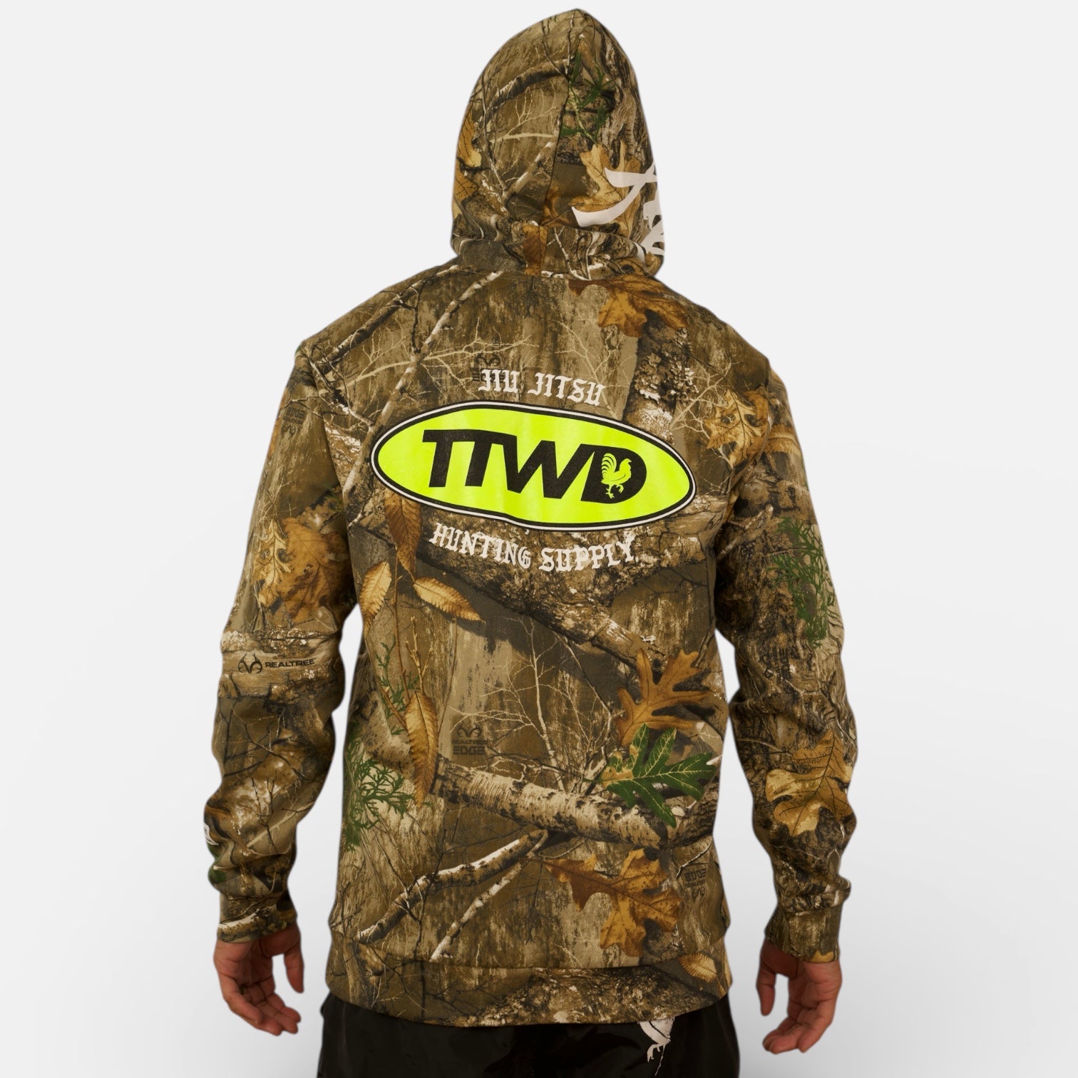 Our latest camouflage hoodie was made using officially licensed 100% cotton Real Tree Edge™ garments. The TTWD Hunting Supply Hoodie is made from a very soft mid-weight poly-cotton and features adjustable metal grommets and tipped round cords. Each hoodie features a regular fit and was screen printed and hand-embroidered by hand in Los Angeles on Official Real Tree EDGE™ merchandise.